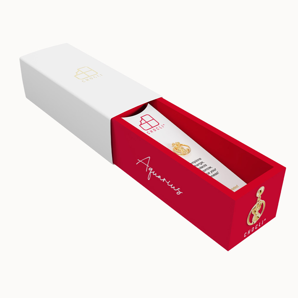 Packaging: Colored jewelry box + white sleeve with gold foil logo