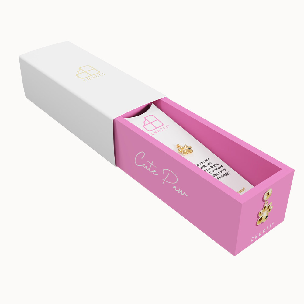 Packaging: Colored jewelry box + white sleeve with gold foil logo