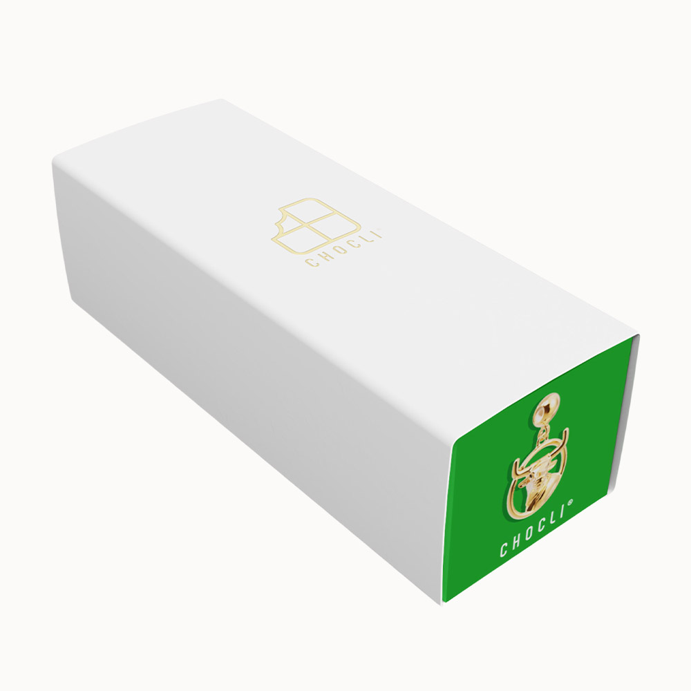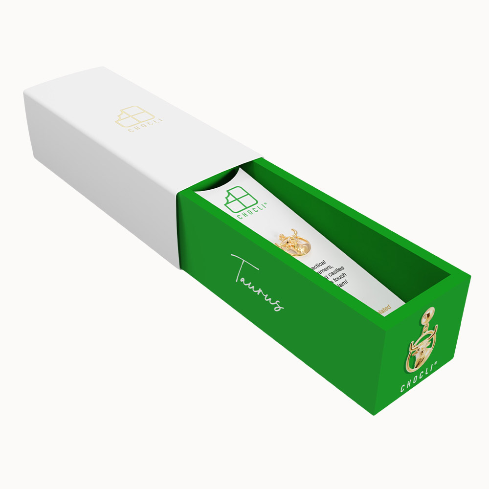 Packaging: Colored jewellery box + white sleeve with gold foil logo