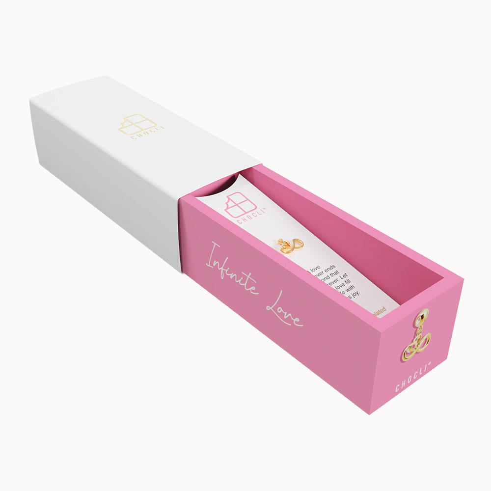 Packaging: Colored jewellery box + white sleeve with gold foil logo