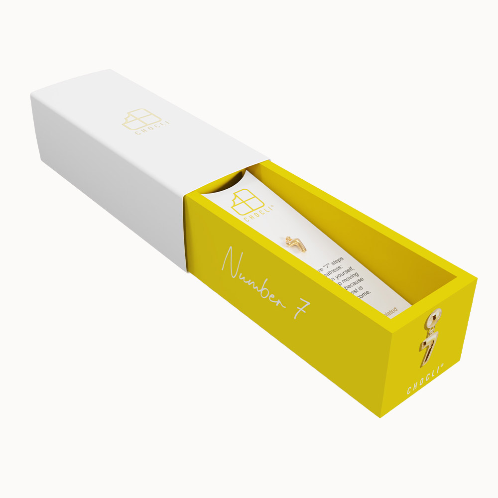 Packaging: Colored jewelry box + white sleeve with gold foil logo