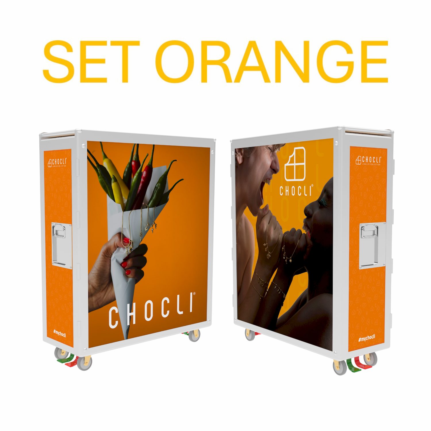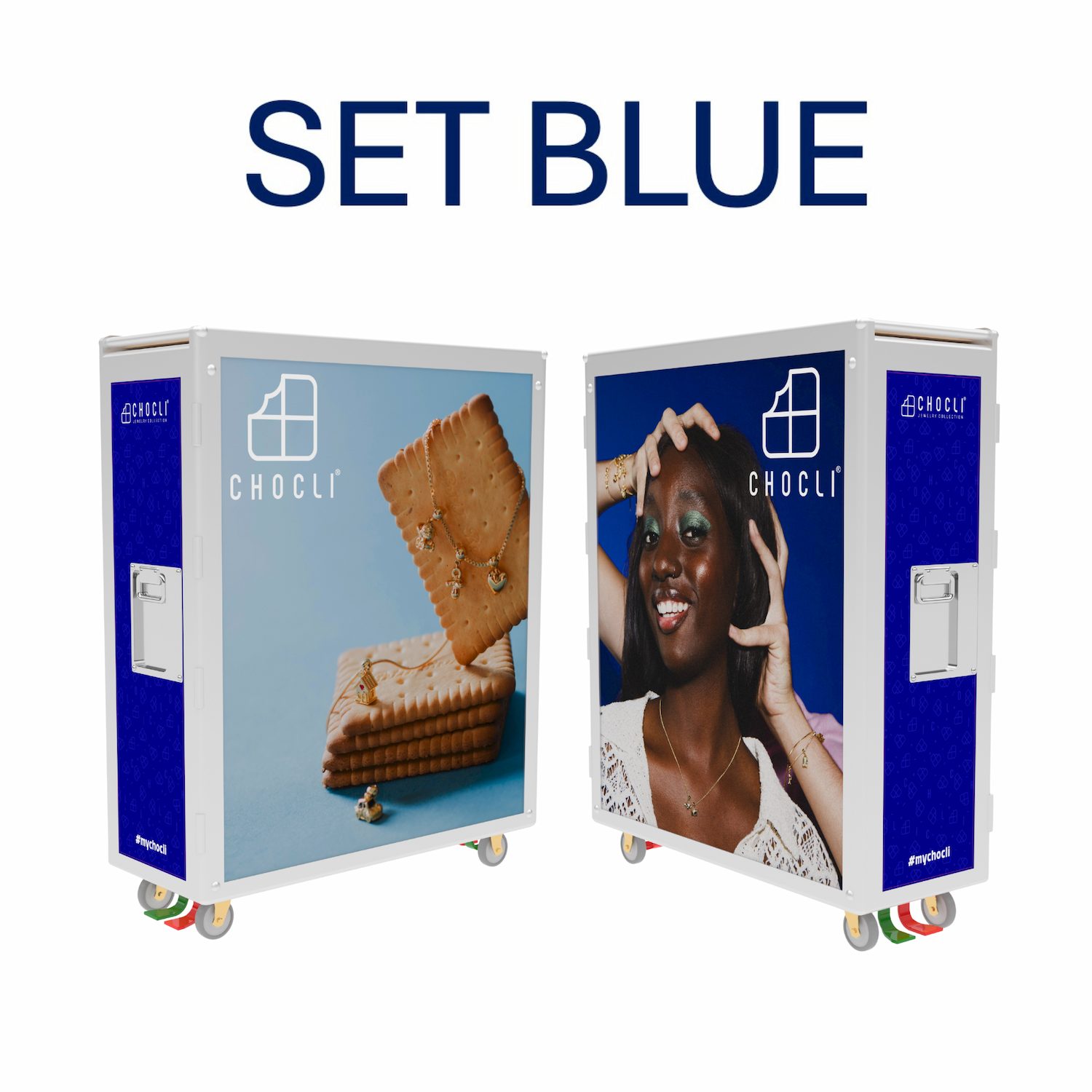 Chocli® Kiosk - Airline Trolley with applied Sticker Artwork (4 sides) + acrylic display CHD15 + Foamboard Header