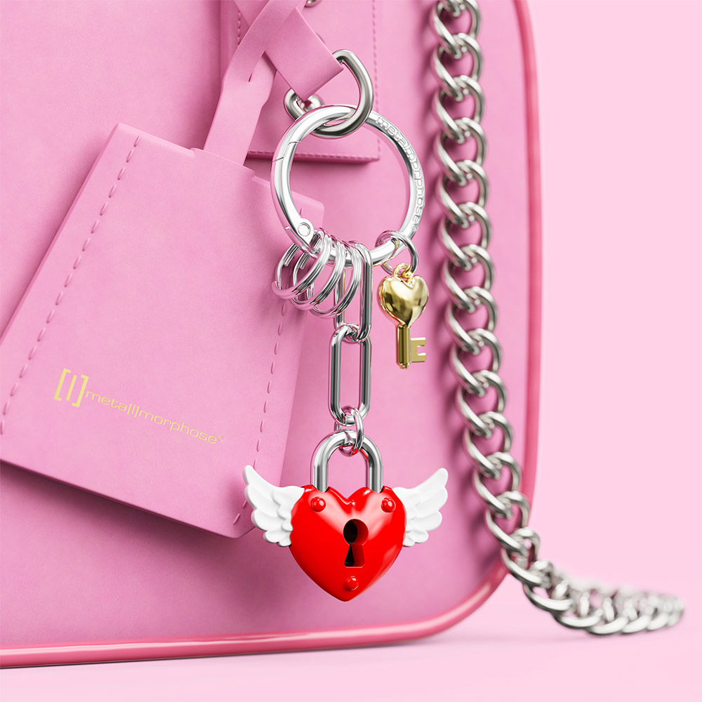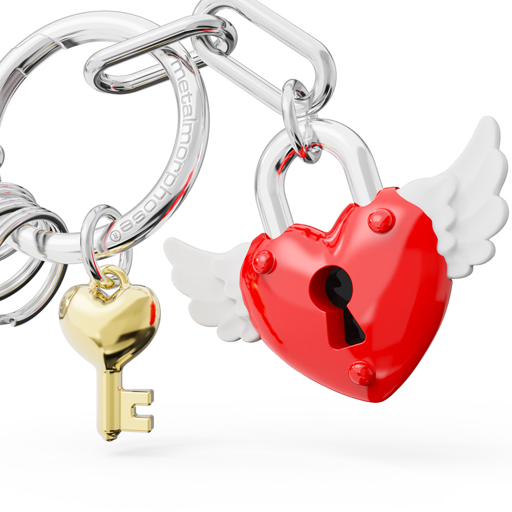 Shiny gold key & shiny chrome, red paint, black epoxy, white silicone finish