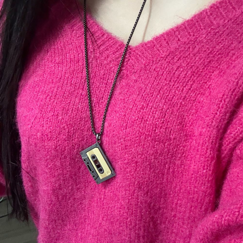 Audio Cassette On-Shirt Necklace